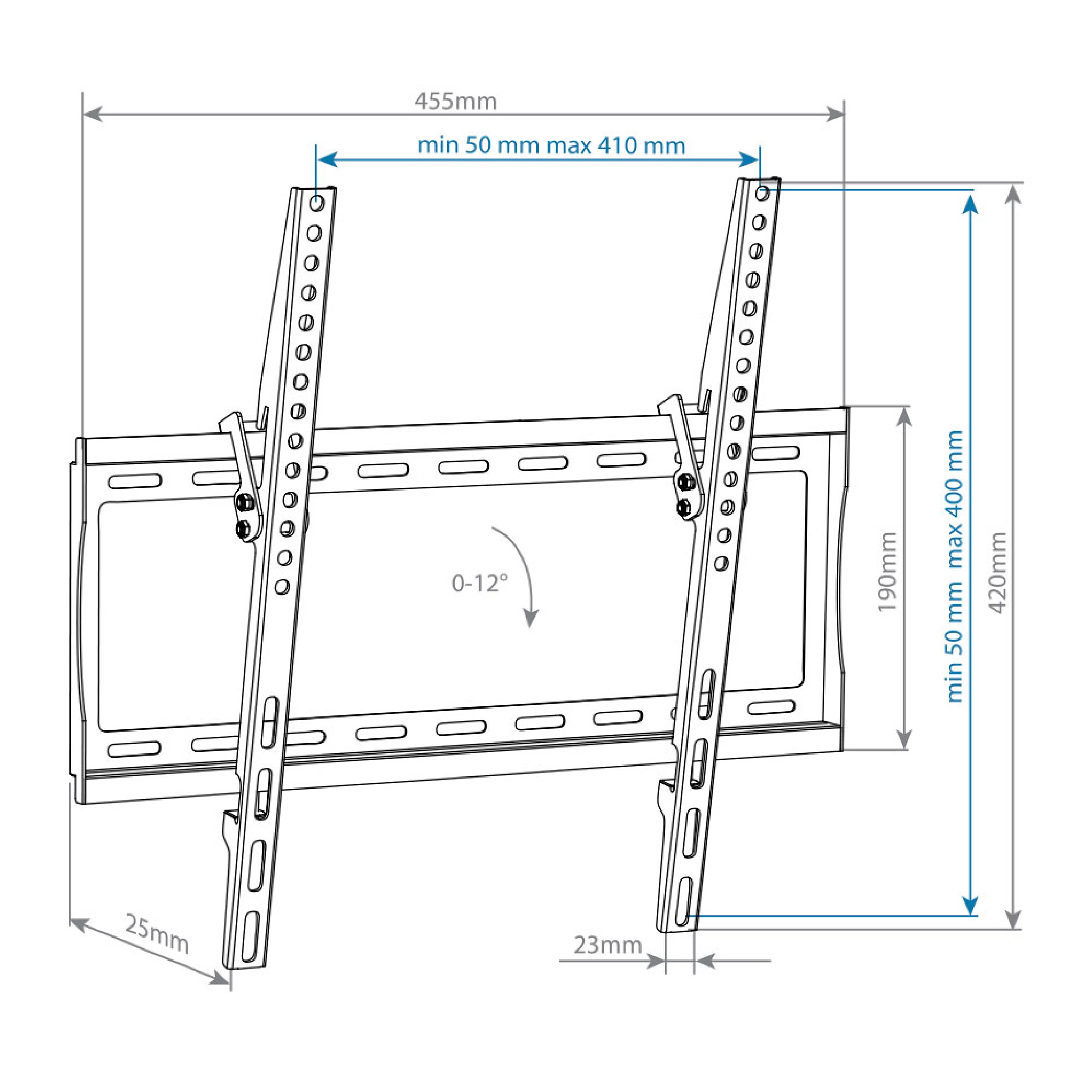 Универсальная система крепления для любого телевизора с посадочными отверстиями от 50 до 430 мм по горизонтали и от 50 до 400 мм по вертикали