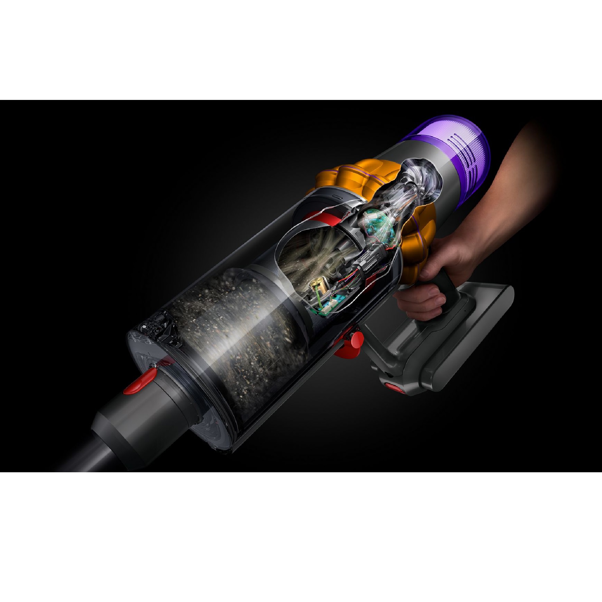 Полностью герметичная система фильтрации Dyson задерживает 99,99 % микроскопических частиц и аллергенов размером от 0,3 микрона.