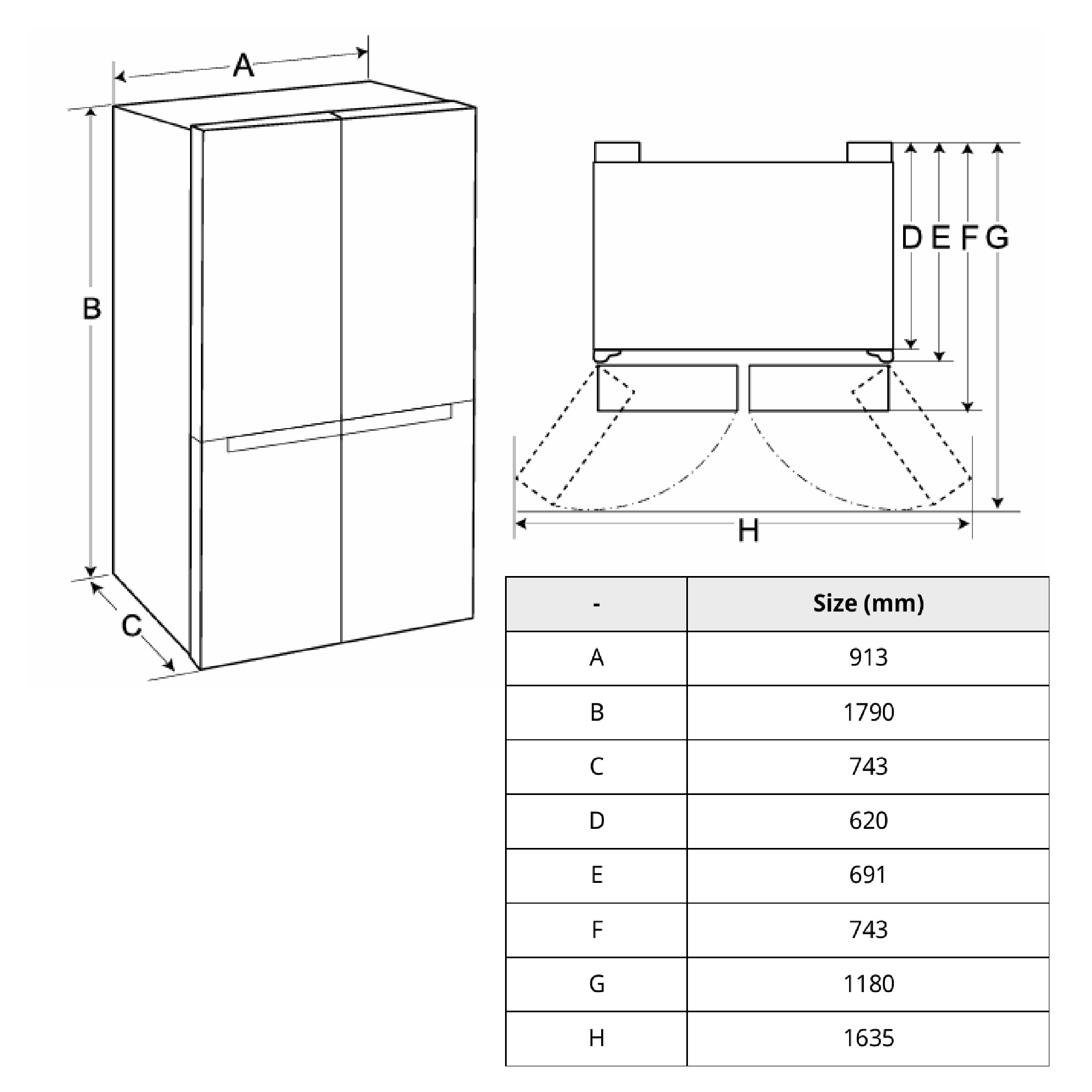 Габариты (ВШГ) ...1780 х 913 х 743 мм