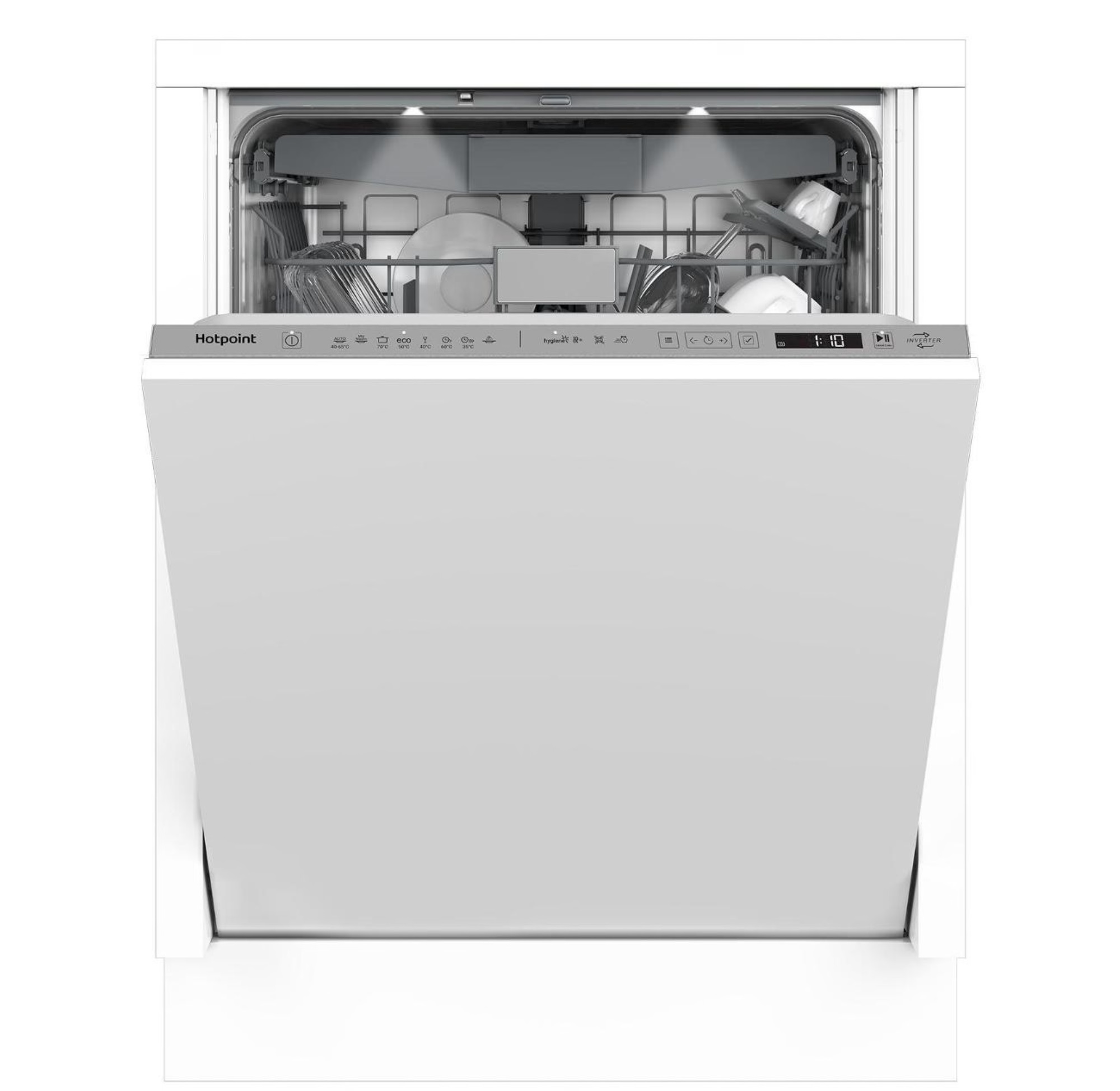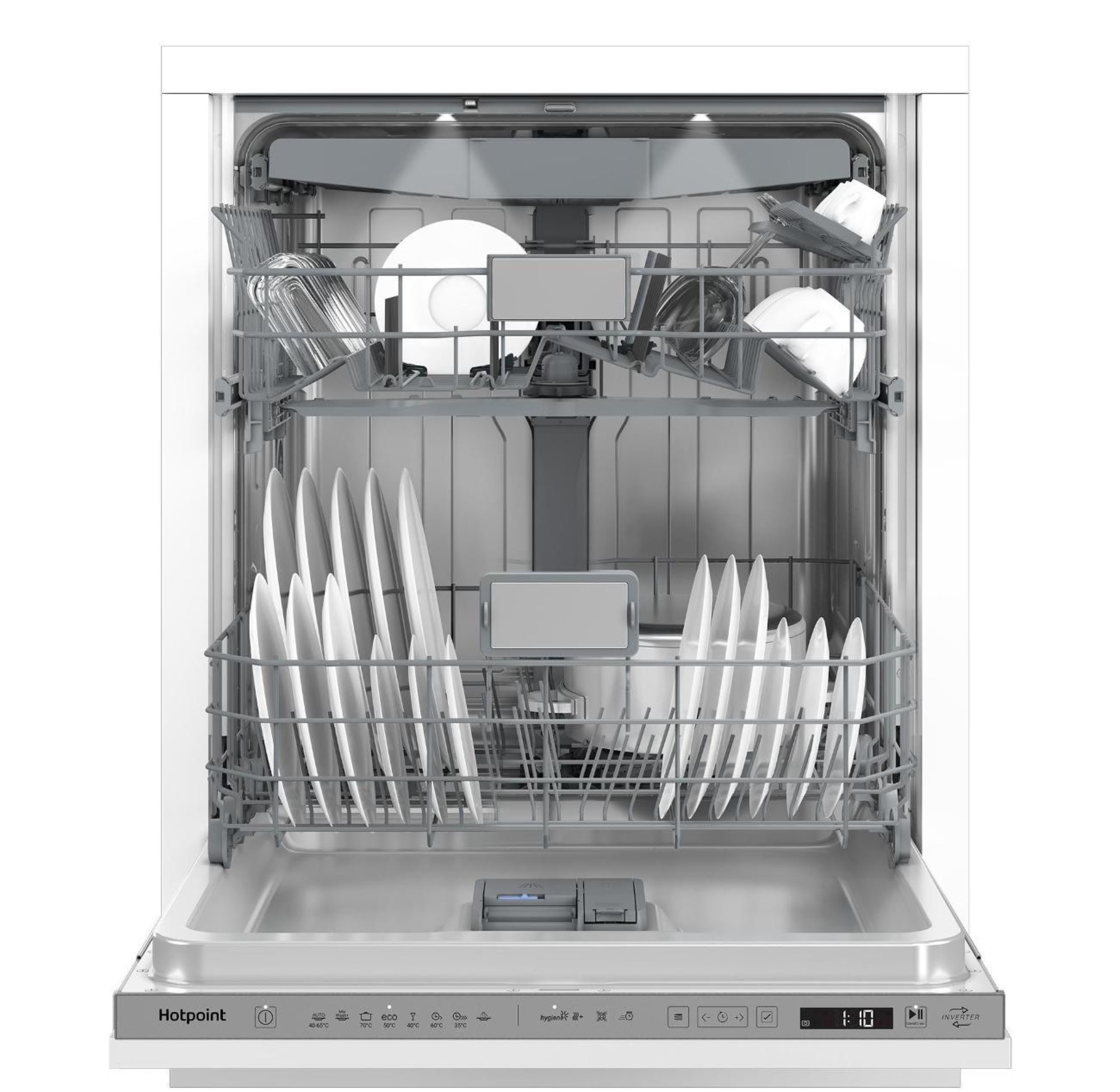 Инверторный мотор: тихий и долговечный, с ним посудомойка Hotpoint прослужит долго, а уровень шума и вибрации даже при интенсивном мытье будет минимальным.