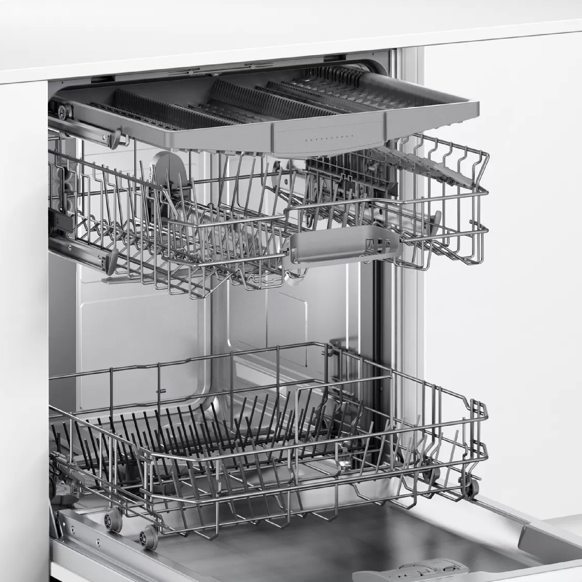 · Система регулировки по высоте Rackmatic поможет оптимизировать пространство посудомоечной машины. Система Rackmatic позволяет регулировать высоту верхнего короба даже в загруженном состоянии, не снимая короб с направляющих.